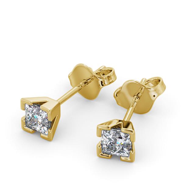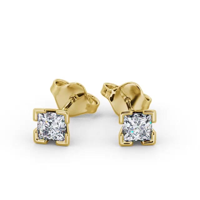 Princess Diamond Split Bezel Stud Earrings 18K Yellow Gold | Dayla