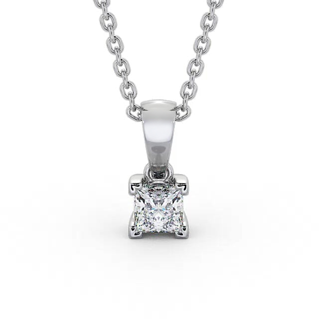 Princess Solitaire Four Claw Stud Contemporary Pendant 18K White Gold | Aniah