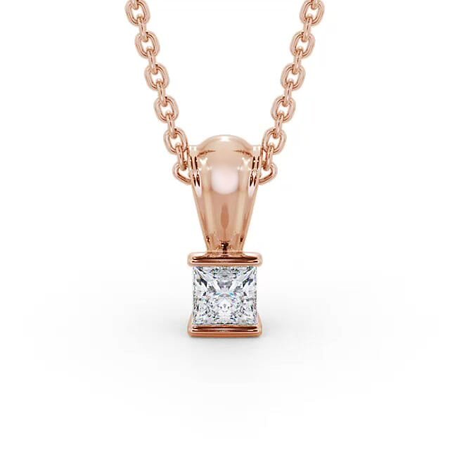 Serafina solitaire stud diamond pendant in 18K Rose Gold. Gracefully suspended from lustrous bale, this solitaire pendant features a sparkling princess shaped diamond in a unique tension setting. This pendant is available in a range of metal and chain options with your choice of natural or lab grown diamonds. We offer a free design service for any customised changes that you may require.