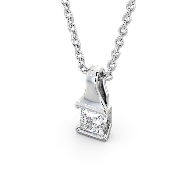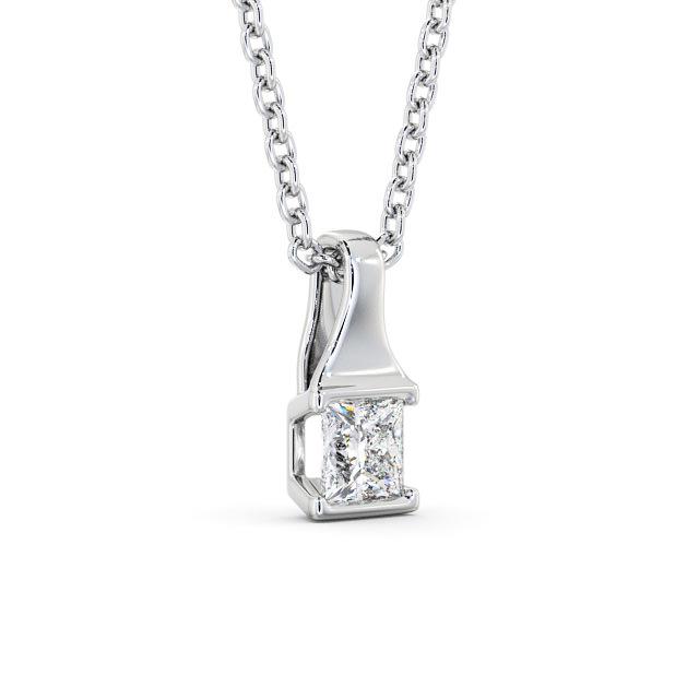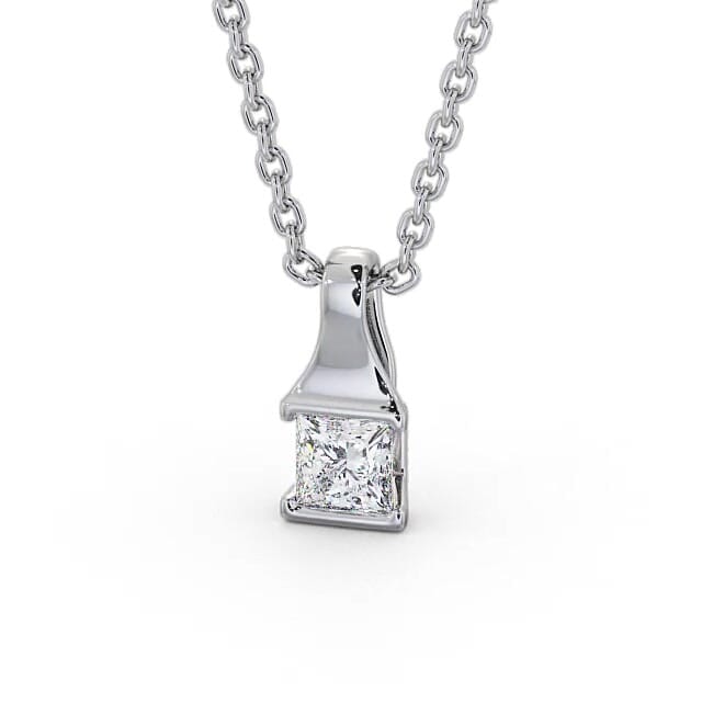 Ayden solitaire stud diamond pendant in 18K White Gold. A glittering princess shaped diamond is tension set in this elegant solitaire pendant style. This pendant is available in a range of metal and chain options with your choice of natural or lab grown diamonds. We offer a free design service for any customised changes that you may require.
