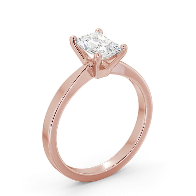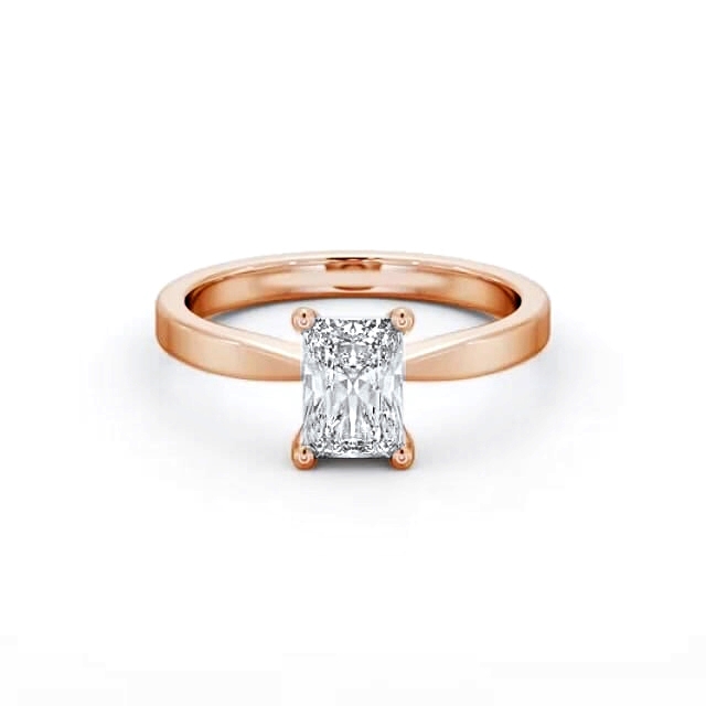 Amaya diamond engagement ring with a four claw 18K Rose Gold setting. Stylish and alluring design solitaire ring, a radiant shaped centre diamond is prong set on a sleek shank for a splendid look. This ring is available in a range of metal options and your choice of natural or lab grown diamonds. We offer a free design service for any customised changes that you may require.