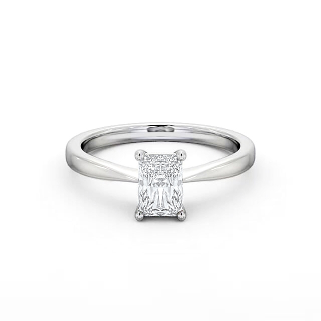 Arika diamond engagement ring with a four claw 18K White Gold setting. Exuding simplicity, this solitaire ring boasts a luminous radiant shaped diamond nestled inside a four prong setting. With a mid band width of 1.9mm, this ring is available in a range of metal options and your choice of natural or lab grown diamonds. We offer a free design service for any customised changes that you may require.