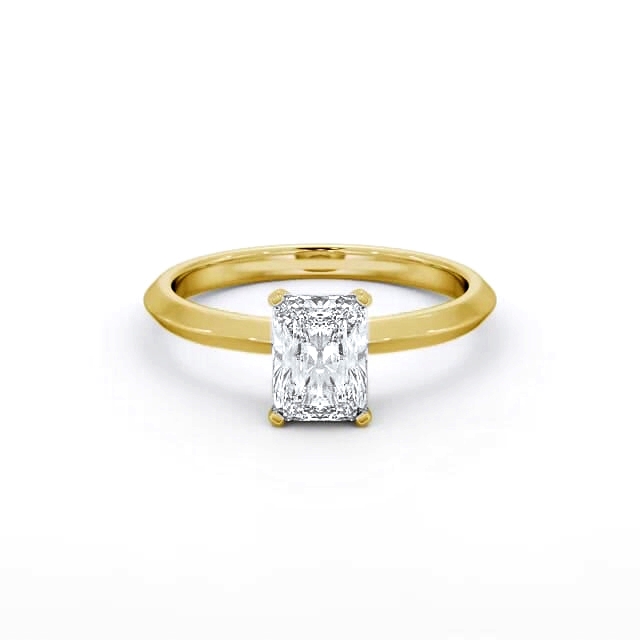 Amariah diamond engagement ring with a four claw 18K Yellow Gold setting. Remarkably appealing, a radiant shaped diamond oozes eternal shine in this highly polished knife edge design engagement ring. This ring is available in a range of metal options and your choice of natural or lab grown diamonds. We offer a free design service for any customised changes that you may require.
