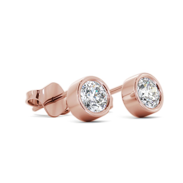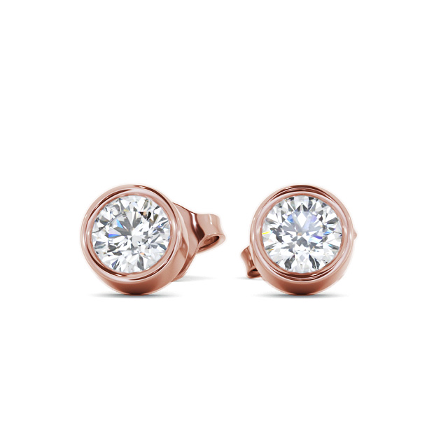 Round Diamond Bezel Stud Earrings 18K Rose Gold | Charlise