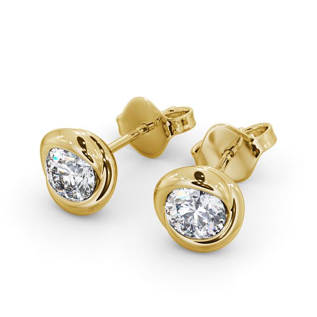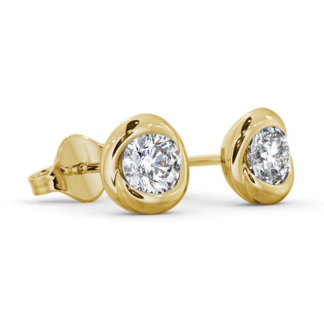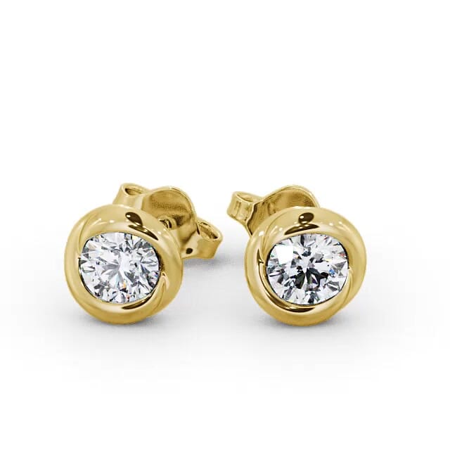 Round Diamond Bezel Stud Earrings 18K Yellow Gold | Elena