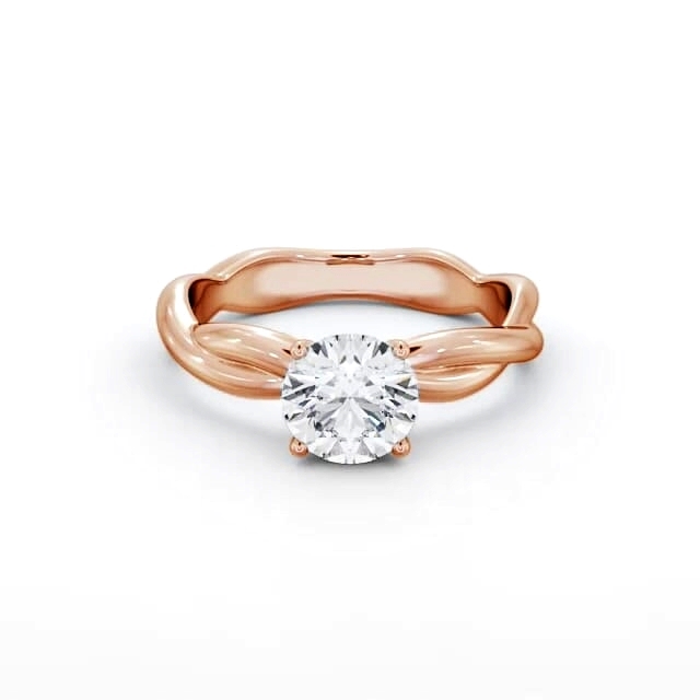 Avaleigh diamond engagement ring with a four claw 18K Rose Gold setting. A twist of modern flair, this ring shimmers with a round shaped diamond at the centre set over a polished finish cross over band. This ring is available in a range of metal options and your choice of natural or lab grown diamonds. We offer a free design service for any customised changes that you may require.