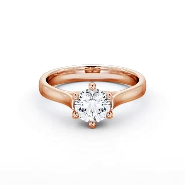 Charley diamond engagement ring with a six claw 18K Rose Gold setting. This exquisite ring boasts a captivating prong set round diamond in the centre with a mid band width of 2.5mm. This ring is available in a range of metal options and your choice of natural or lab grown diamonds. We offer a free design service for any customised changes that you may require.