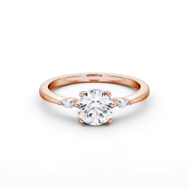 Round Ring 18K Rose Gold Solitaire with Marquise Shape Side Stones | Alaya