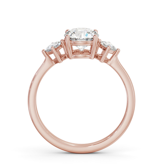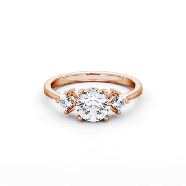 Magali diamond engagement ring with a four claw 18K Rose Gold setting. Perfectly designed, this ring flaunts three sparkling diamonds, one large round shaped centre and two small princess shaped diamonds set over a highly polished sleek band. Total diamond side stones weigh approximately 0.12ct with Clarity VS1 and Colour F. This ring is available in a range of metal options and your choice of natural or lab grown diamonds. We offer a free design service for any customised changes that you may require.