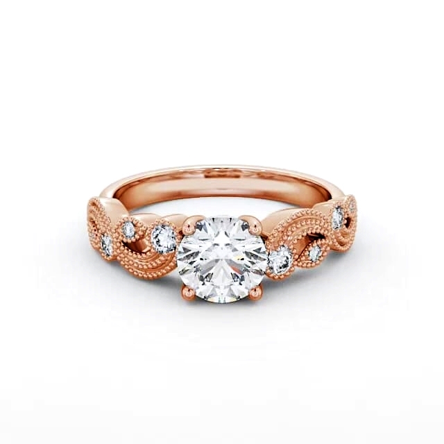 Round Diamond Vintage Style Engagement Ring 18K Rose Gold Solitaire | Miya