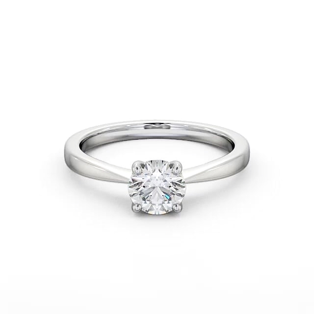 Karina diamond engagement ring with a four claw 18K White Gold setting. This classic engagement ring features a round diamond held amid four prong setting on gently tapered shoulders. With a mid band width of 1.9mm, this ring is available in a range of metal options and your choice of natural or lab grown diamonds. We offer a free design service for any customised changes that you may require.
