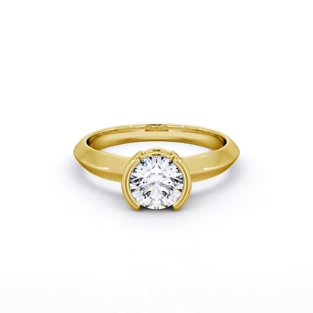 Round Diamond Knife Edge Band Ring 18K Yellow Gold Solitaire | Avaya