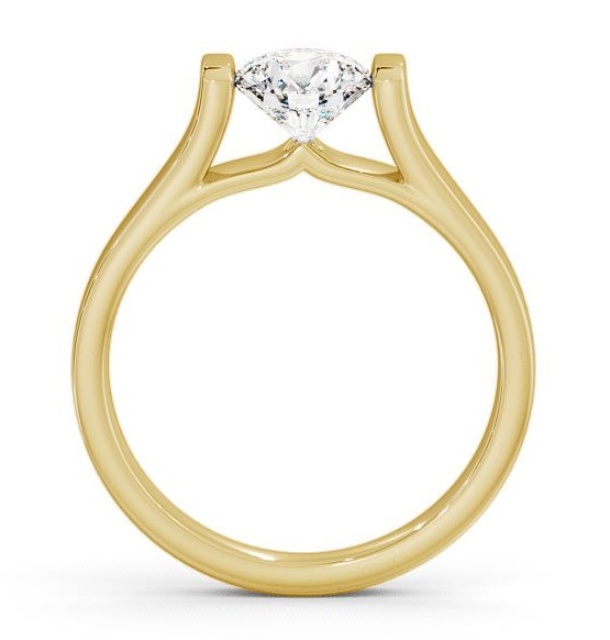 Moriah diamond engagement ring with a half bezel tension 18K Yellow Gold setting. With an elegant and contemporary styling, this ring showcases a sparkling round diamond set in a half bezel tension setting. With a mid band width of 2.2mm, this ring is available in a range of metal options and your choice of natural or lab grown diamonds. We offer a free design service for any customised changes that you may require.