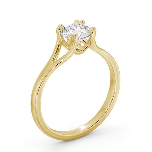 Shreya diamond engagement ring with an eight claw 18K Yellow Gold setting. This alluring solitaire ring features a round diamond, set into double prong setting with split parallel shoulders. With a mid band width of 1.9mm, this ring is available in a range of metal options and your choice of natural or lab grown diamonds. We offer a free design service for any customised changes that you may require.