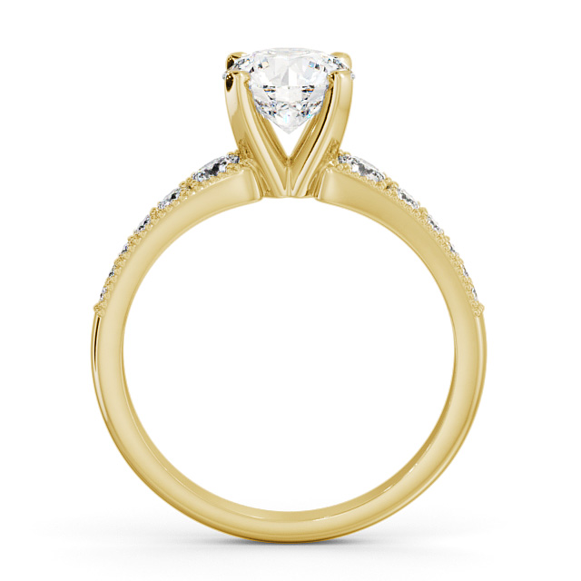 Round 4 Prong Ring 18K Yellow Gold Solitaire with Side Stones | Brooklynn