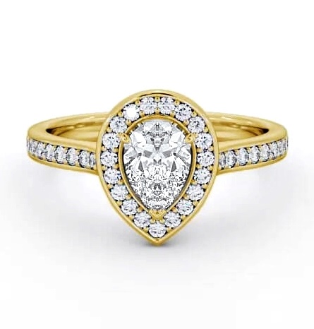 Odelia diamond engagement ring with a four claw 18K Yellow Gold setting. Classic and elegant, this impressive engagement ring flaunts a stunning round diamond at the centre fringed by smaller diamonds embedded shank. Total diamond side stones weigh approximately 0.18ct with Clarity VS1 and Colour F. This ring is available in a range of metal options and your choice of natural or lab grown diamonds. We offer a free design service for any customised changes that you may require.