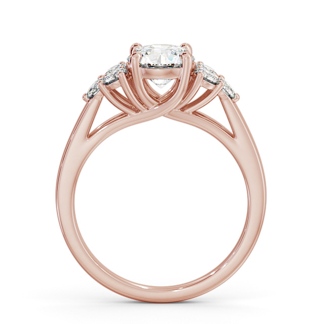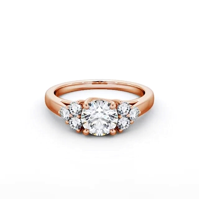 Anushka diamond engagement ring with a four claw 9K Rose Gold setting. Elegant and sleek, this beautiful ring boasts a round shaped diamond at the centre and three small round diamonds accent on each side. Total diamond side stones weigh approximately 0.35ct with Clarity VS1 and Colour F. This ring is available in a range of metal options and your choice of natural or lab grown diamonds. We offer a free design service for any customised changes that you may require.