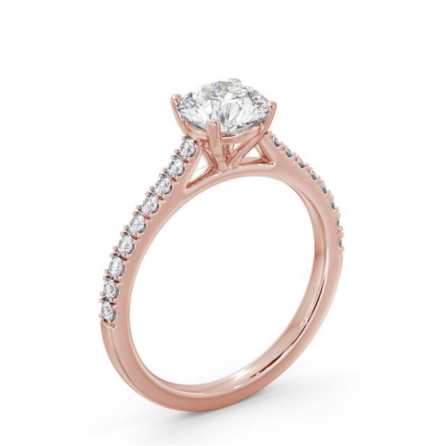 Johana diamond engagement ring with a four claw 9K Rose Gold setting. An impressive ring, with a round shaped diamond in a four claw setting and an array of small round diamonds on each side of the band. Total diamond side stones weigh approximately 0.26ct with Clarity VS1 and Colour F. This ring is available in a range of metal options and your choice of natural or lab grown diamonds. We offer a free design service for any customised changes that you may require.