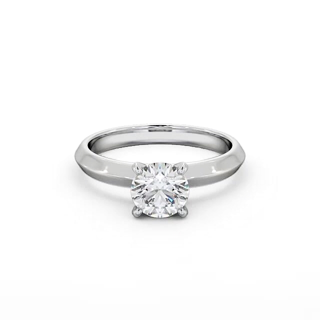 Ayla diamond engagement ring with a four claw 9K White Gold setting. A beautiful, round diamond is prong set atop a striking knife edge band offering flashes of light and intense clarity. This ring is available in a range of metal options and your choice of natural or lab grown diamonds. We offer a free design service for any customised changes that you may require.