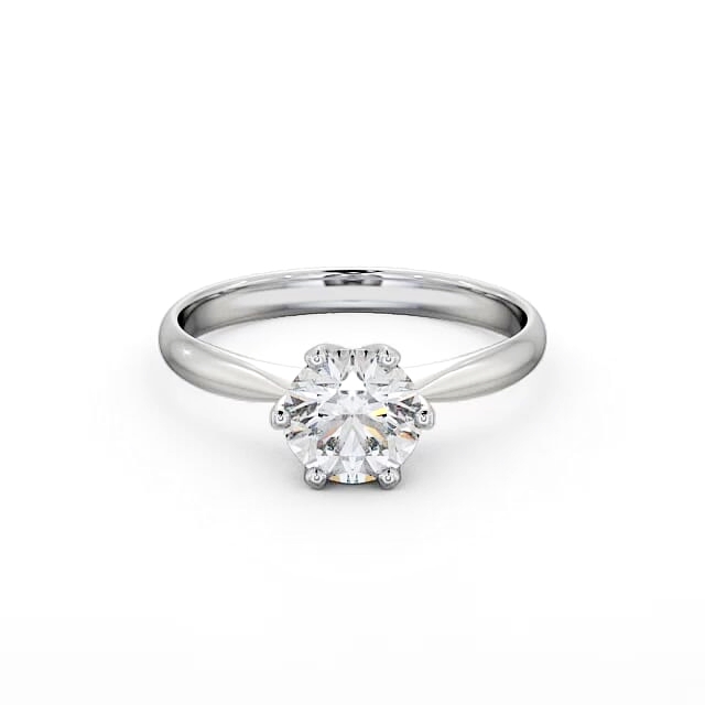 Round Diamond Dainty Band with 6 Prongs Ring 9K White Gold Solitaire | Elana