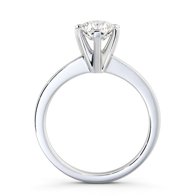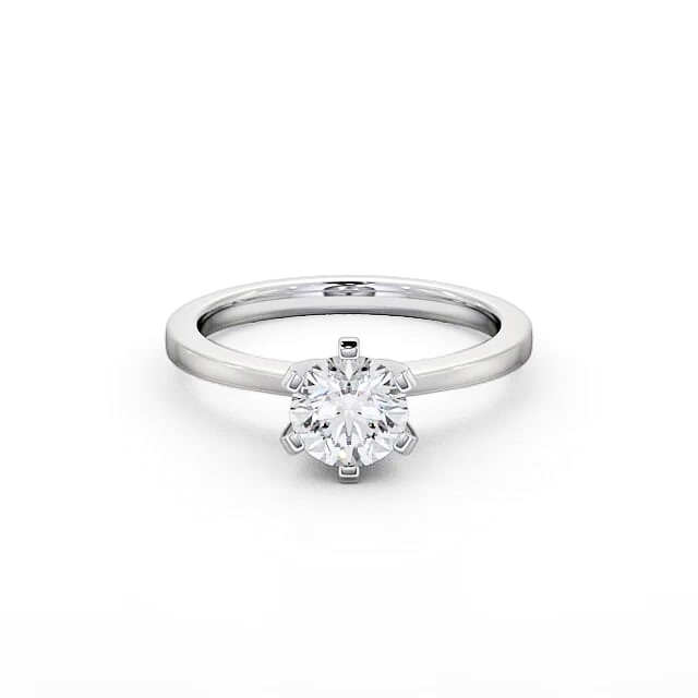 Eliette diamond engagement ring with a six claw 9K White Gold setting. A sparkling round diamond high set amidst six prongs enhances the beauty of this sparkling engagement ring. This perfectly polished ring has a mid band width of 1.6mm and is available in a range of metal options and your choice of natural or lab grown diamonds. We offer a free design service for any customised changes that you may require.