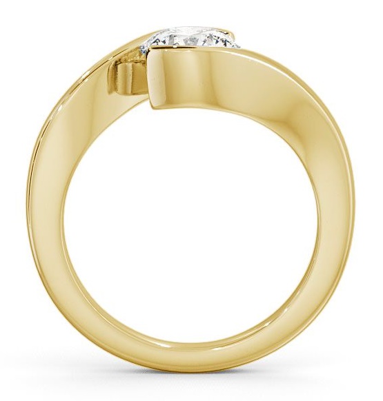 Malena diamond engagement ring with a four claw 9K Yellow Gold setting. A traditional style with a dash of modern element, this engagement ring is graced with a round diamond mounted on a striking split shaped band. With a mid band width of 2.5mm, this ring is available in a range of metal options and your choice of natural or lab grown diamonds. We offer a free design service for any customised changes that you may require.