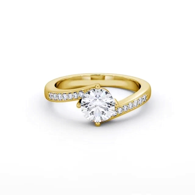 Round Diamond Offset Band Engagement Ring 9K Yellow Gold Solitaire | Nakari