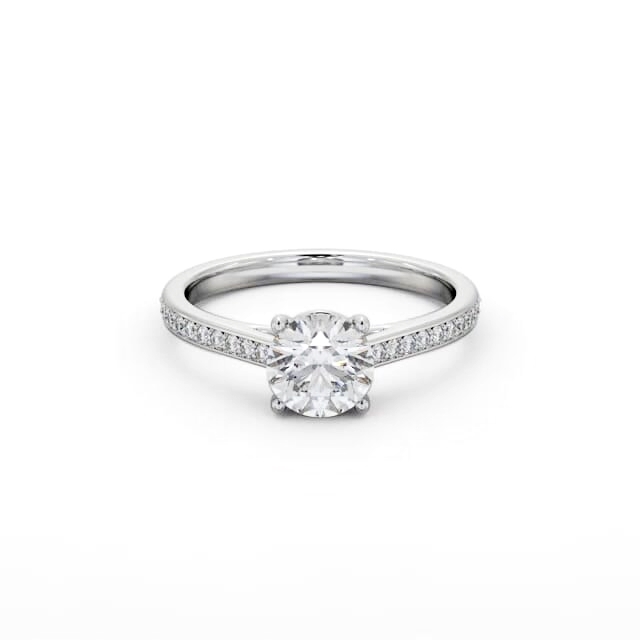 Round Diamond 4 Prong Engagement Ring Palladium Solitaire with Channel | Emily