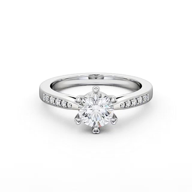 Round Diamond 6 Prong Engagement Ring Platinum Solitaire with Channel | Cosette