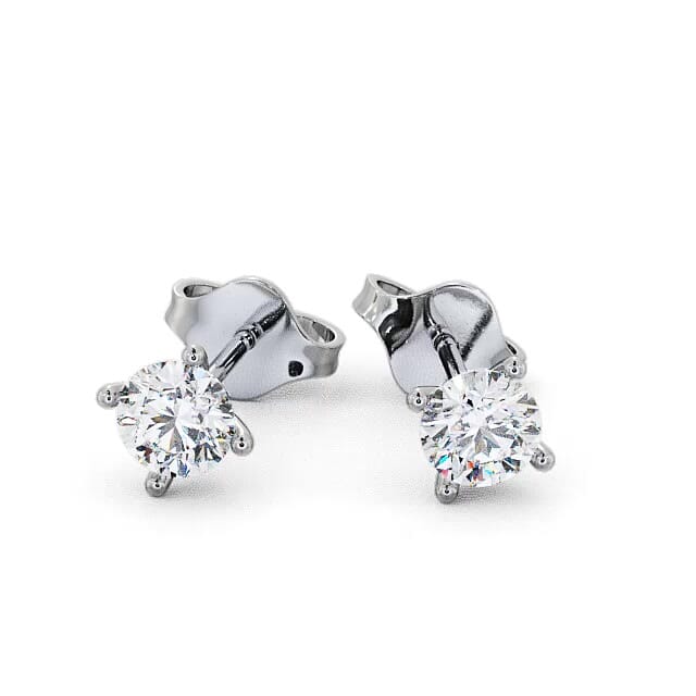 Round Diamond Four Claw Stud Earrings 18K White Gold | Mikah