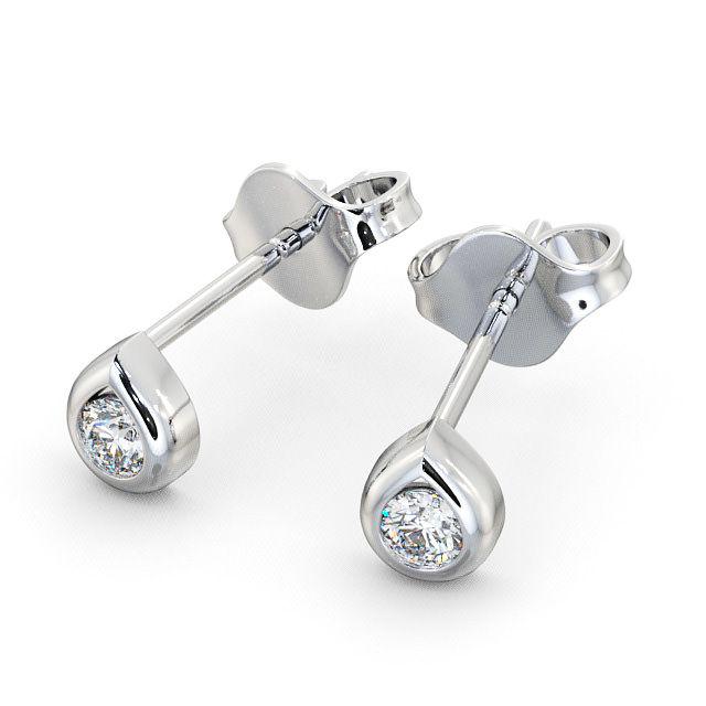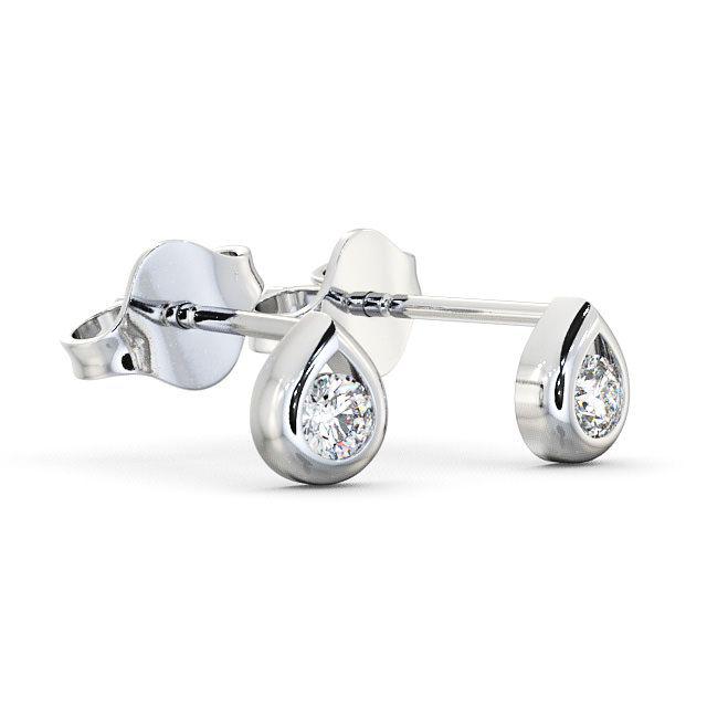 Round Diamond Tear Drop Design Stud Earrings 18K White Gold | Adela