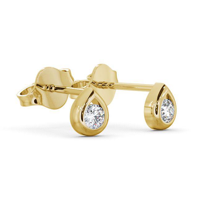 Round Diamond Tear Drop Design Stud Earrings 9K Yellow Gold | Adela
