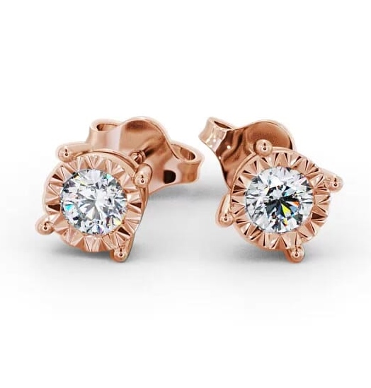 Round Diamond Three Claw Stud Earrings 9K Rose Gold | Dalia