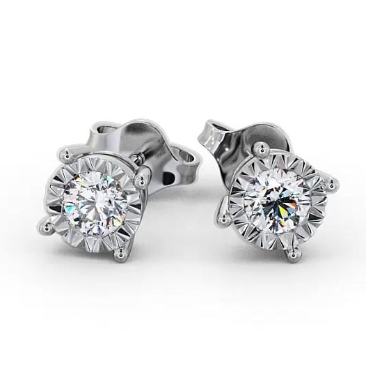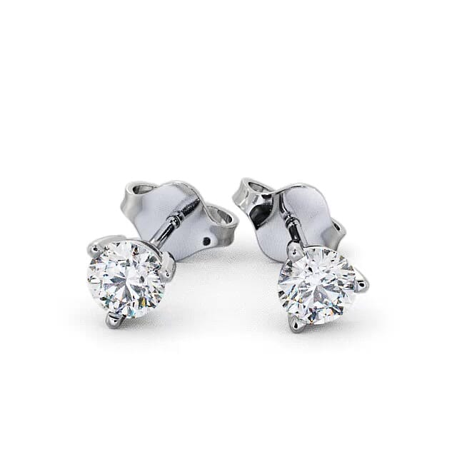 Round Diamond Three Claw Stud Earrings 9K White Gold | Dalia