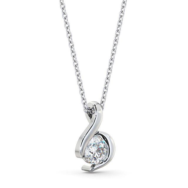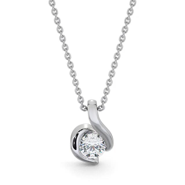 Round Solitaire Diamond Swirl Design Pendant 18K White Gold | Sanjana