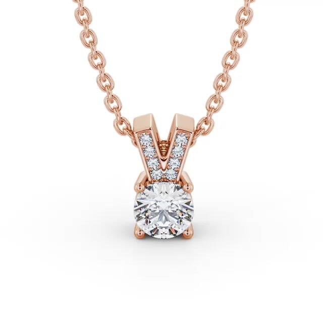 Round Solitaire Four Claw Stud Pendant 18K Rose Gold with Set Bail | Zamari