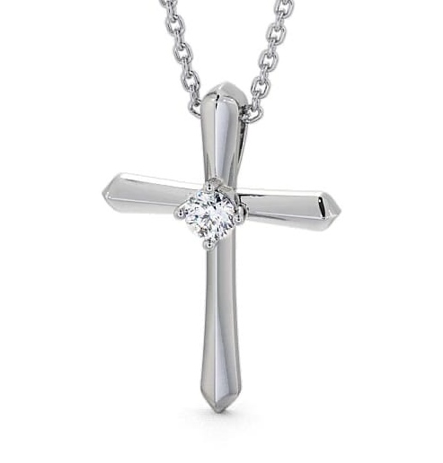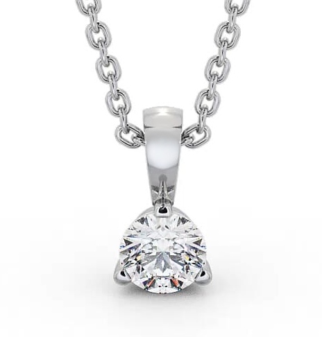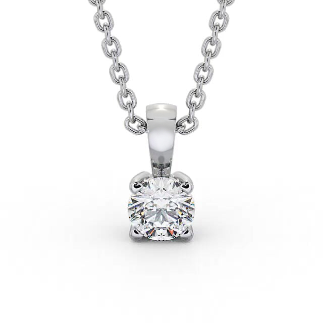 Round Solitaire Four Claw Stud Diamond Pendant 18K White Gold | Gittel