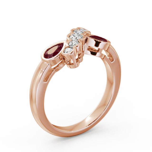 Kensington ruby and diamond 1.00ct ring in a 9K Rose Gold setting. This stunning ring features a beautiful diagonal array of five round diamonds guarded by a dazzling pear-shaped rubys on either side. rubys total weight is 0.40 Carat and diamonds weighs 0.20 Carat in total. This ring is available in a range of metal options with AAA grade gemstone. We offer a free design service for any customised changes that you may require.