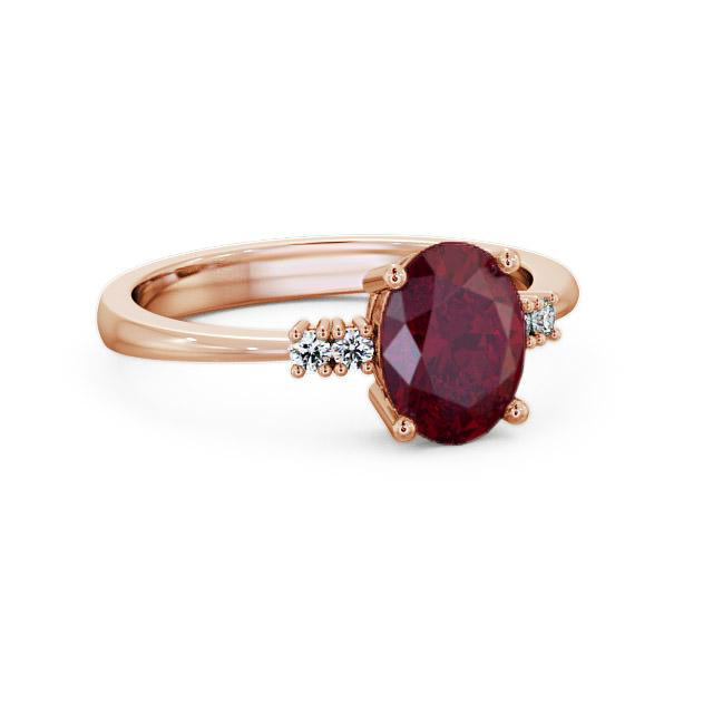Zina ruby and diamond 1.61ct ring in a 18K Rose Gold setting. Electrifying 1.55 Carat oval shaped ruby gemstone is cradled by four round shaped 0.06 Carat total weight diamonds to add extra detailing and sparkle to this ring. This ring is available in a range of metal options with AAA grade gemstone. We offer a free design service for any customised changes that you may require.