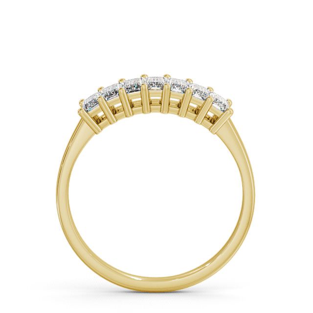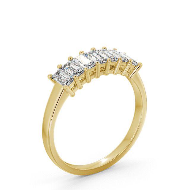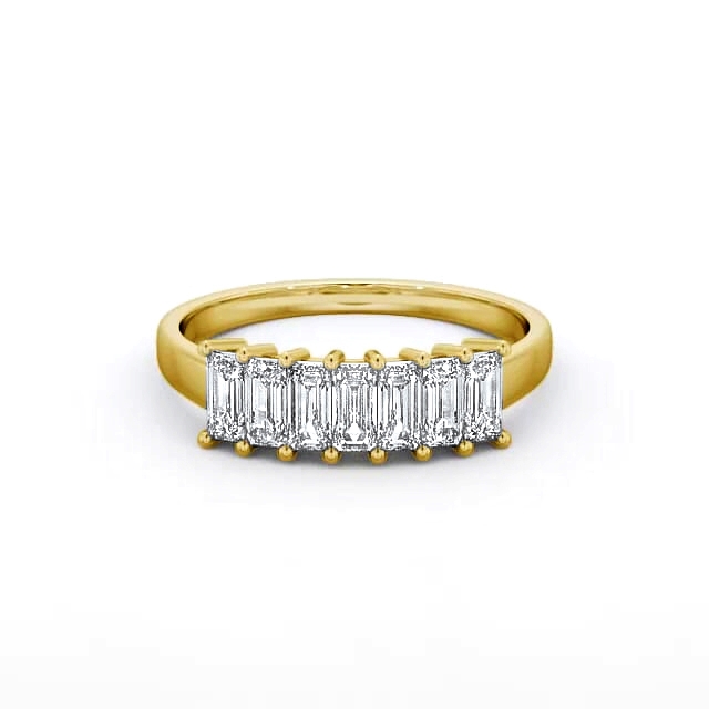 Zahara seven stone diamond ring in a claw 9K Yellow Gold setting. Stunning and beautiful, seven same sized emerald shaped diamonds are prong set in perfect alignment atop a polished shank in this seven stone ring. This ring is available in a range of metal options and your choice of natural or lab grown diamonds. We offer a free design service for any customised changes that you may require.