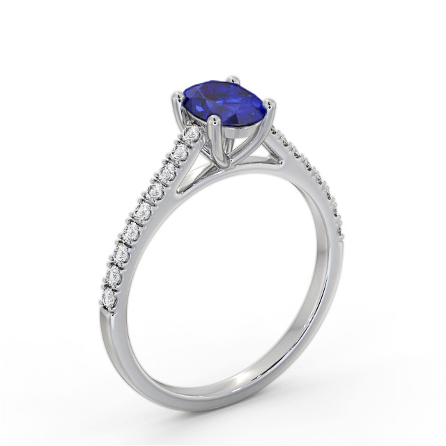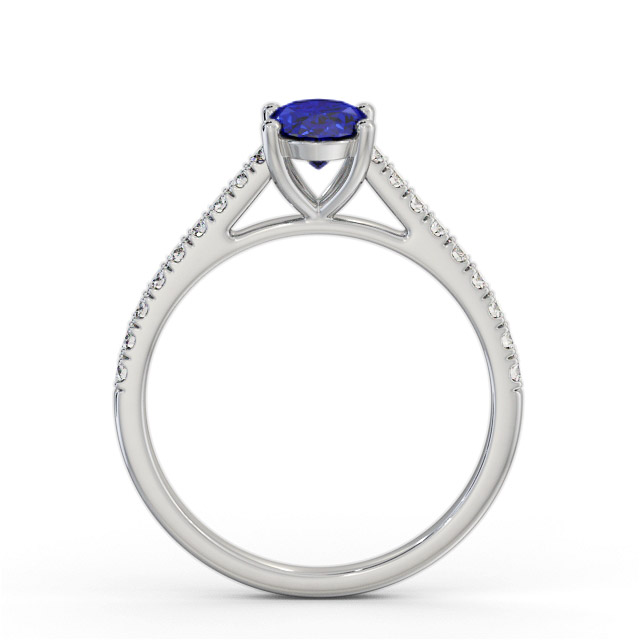 Brianda solitaire blue sapphire and diamond 1.20ct ring in Platinum. Ring with a single 1.00ct Oval shaped blue sapphire and a line of small Oval shaped diamonds along either side of the band totaling 0.20ct in diamond weight. This ring is available in a variety of metal types and your choice of natural or lab grown gems. We provide a free design service for any special modifications that you may require.