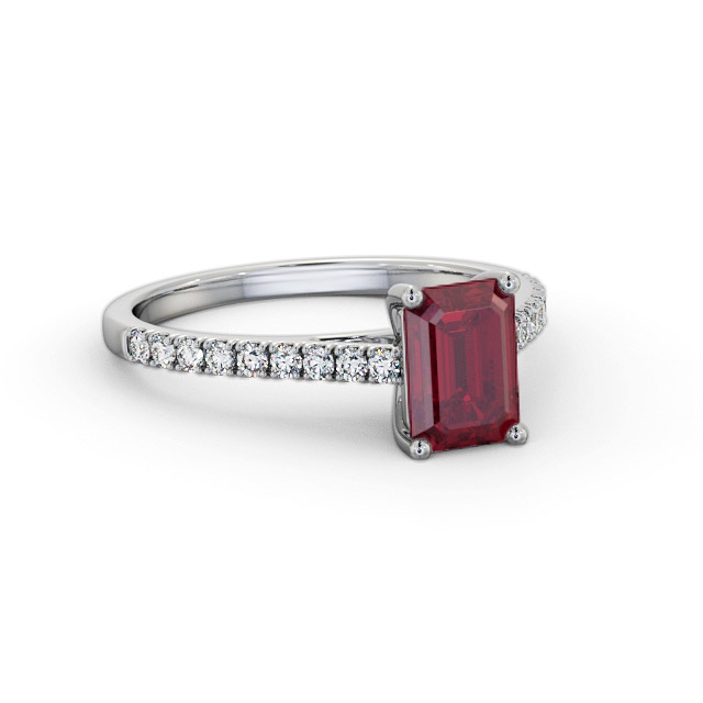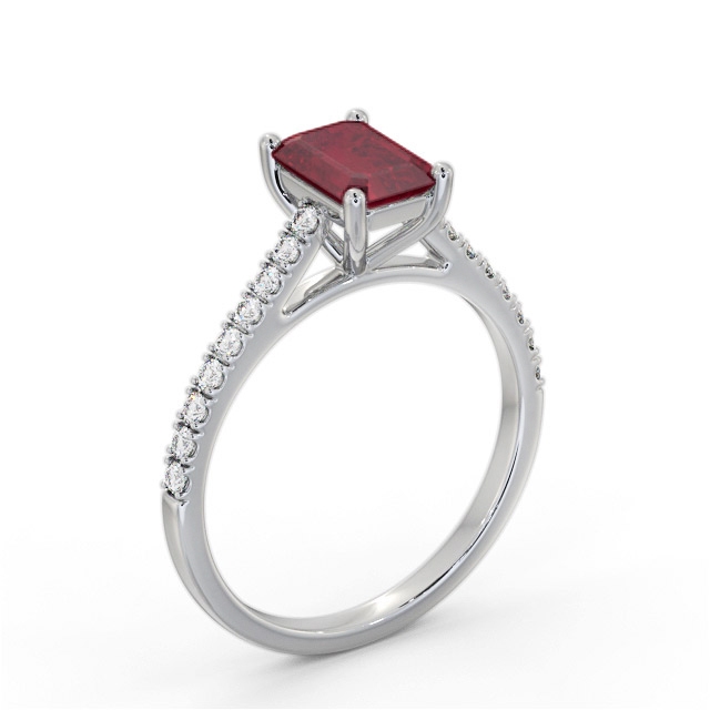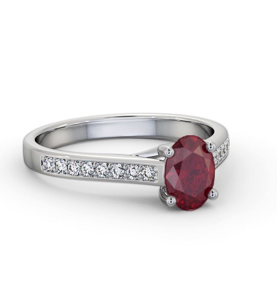 Solitaire 1.35ct Ruby and Diamond 18K White Gold Ring with Channel | Bayan
