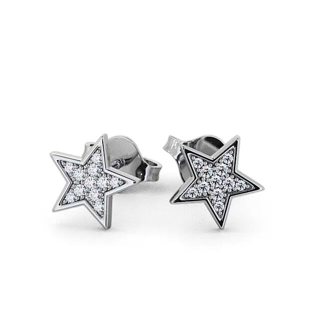 Star Shape Round Diamond Cluster Style Earrings 9K White Gold | Gretta