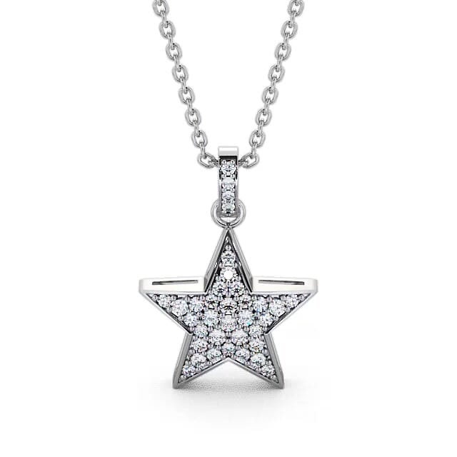 Ellamae star shaped cluster diamond 0.42 Carat pendant in 9K White Gold. This star shaped pendant is encrusted with sparkling pave-set round diamonds and an additional diamonds studded bail. This pendant is available in a range of metal and chain options with your choice of natural or lab grown diamonds. We offer a free design service for any customised changes that you may require.