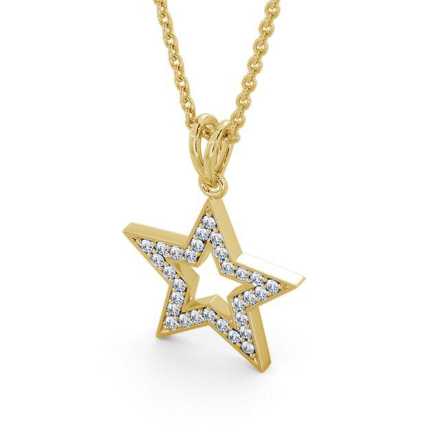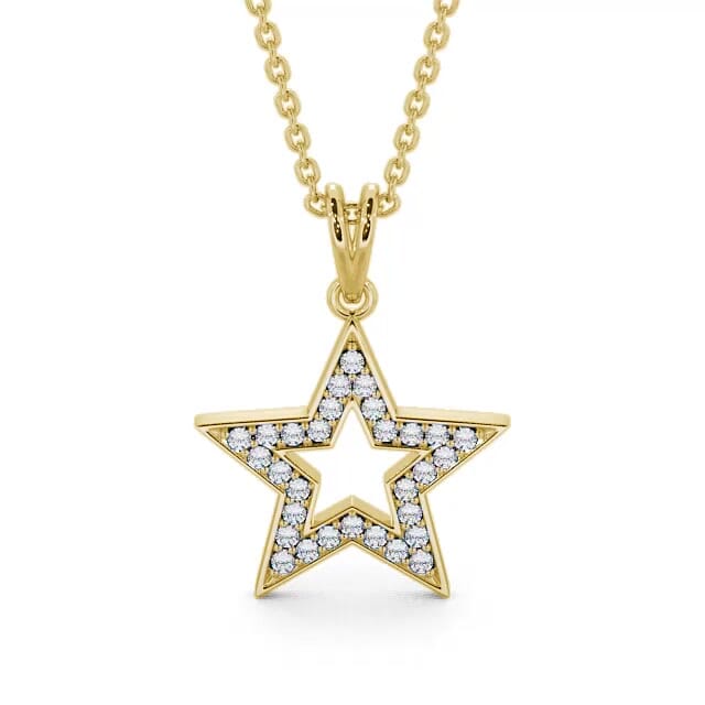 Tammy star shaped cluster diamond pendant in 18K Yellow Gold. Sparkling round diamonds decorates this charming double star design pendant for eternal glow. This pendant is available in a range of metal and chain options with your choice of natural or lab grown diamonds. We offer a free design service for any customised changes that you may require.