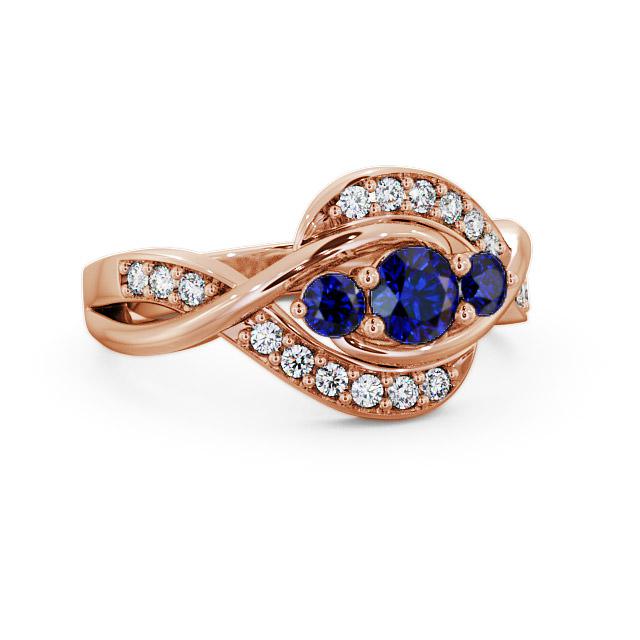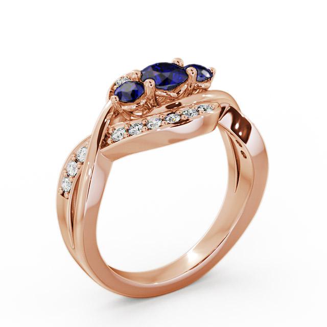 Three Stone Blue Sapphire and Diamond 0.70ct Ring 18K Rose Gold | Delia