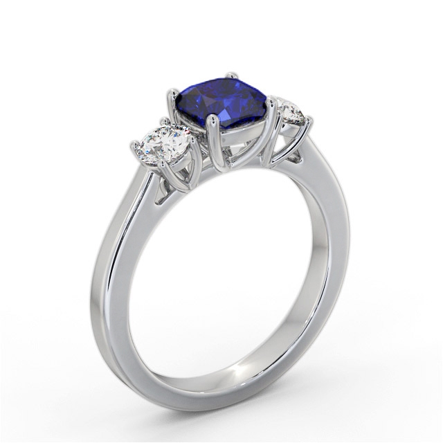 Three Stone Blue Sapphire and Diamond 1.40ct Ring 9K White Gold | Alonis