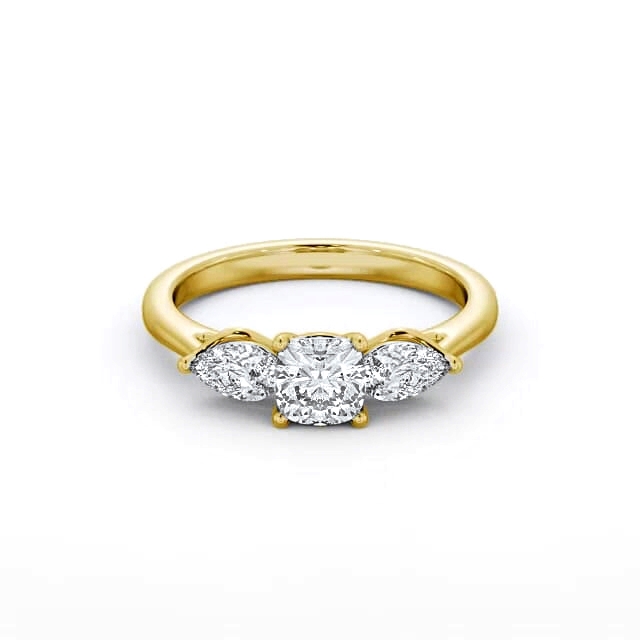 Three Stone Cushion and Pear Diamond Trilogy Ring 9K Yellow Gold | Bethanie