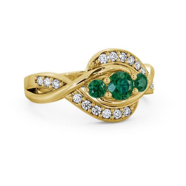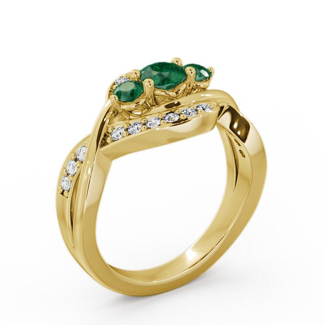 Three Stone Emerald and Diamond 0.59ct Ring 9K Yellow Gold | Delia