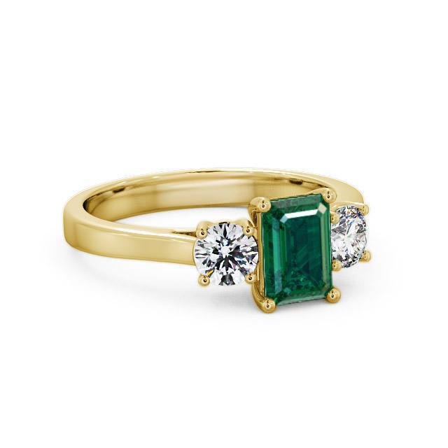 Three Stone Emerald and Diamond 1.00ct Ring 9K Yellow Gold | Kenley